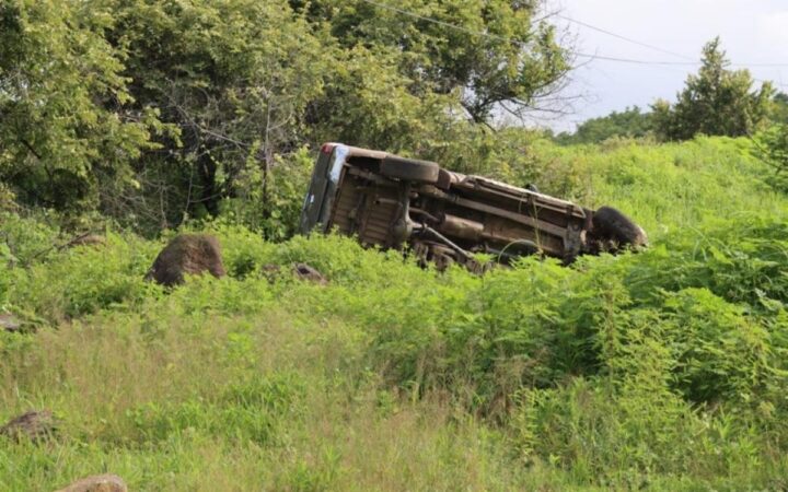 Las autoridades aseguraron armamento y un vehículo, que fue hallado volteado que descarriló de la carretera Uruapan-Lombardía.