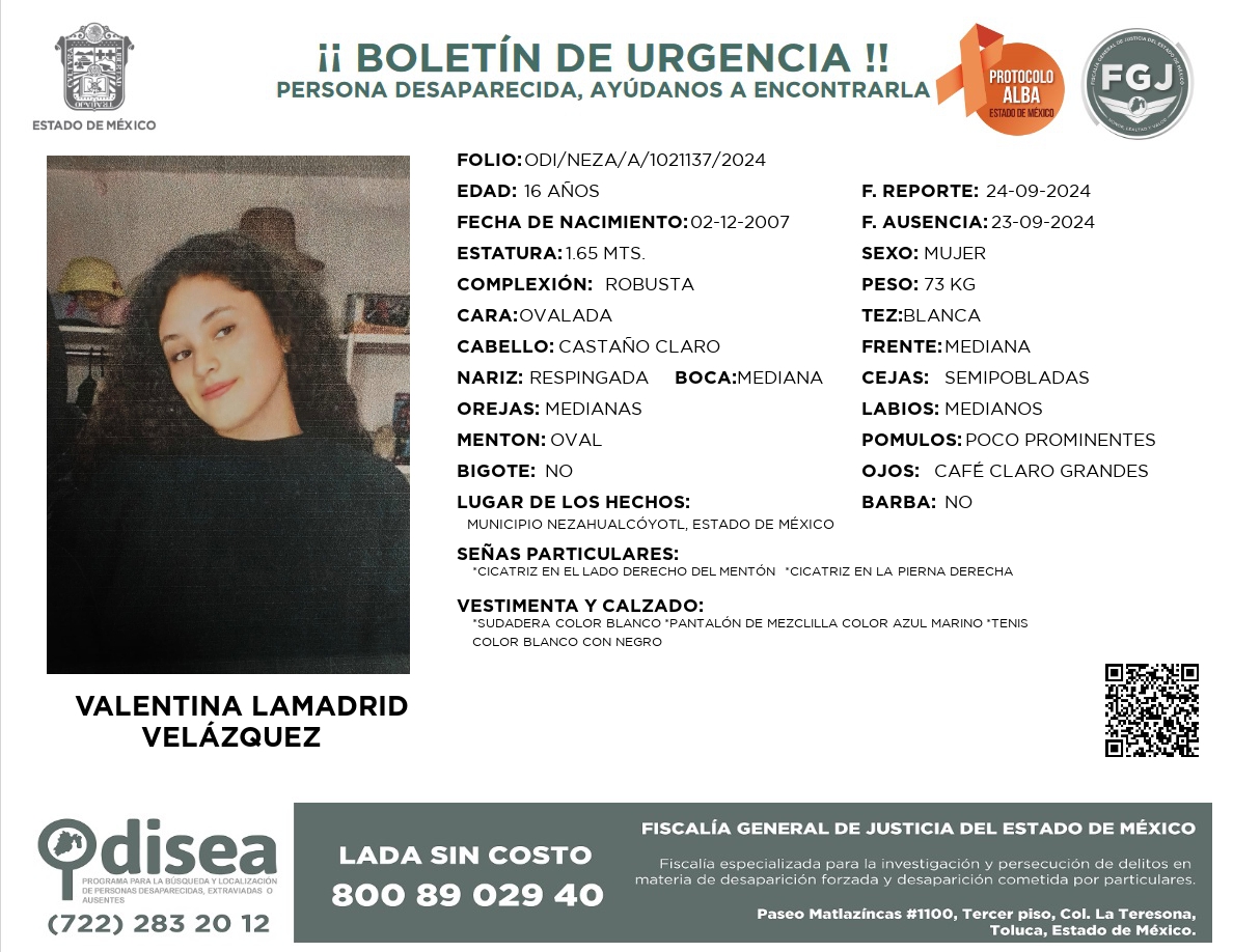 Fue vista por última vez el lunes 23 de septiembre en Nezahualcóyotl.