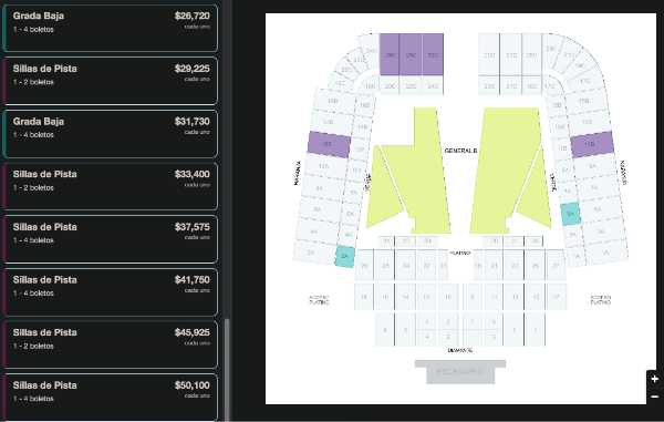 En la página de reventa se aprecian tickets de ‘sillas de pista’ por hasta 50 mil 100 pesos.