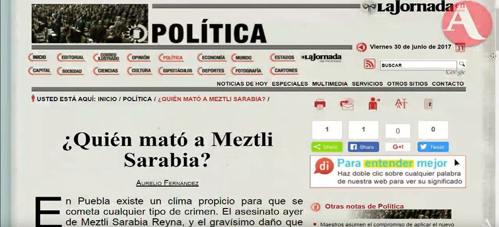 No se acusa un crimen de Estado contra Meztli Sarabia, pero sí se responsabiliza al ex gobernador panista por la mala situación que atraviesa Puebla y la persecución contra esa familia.