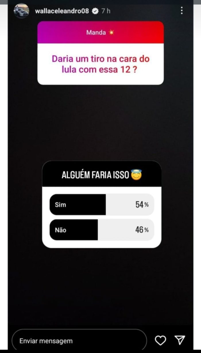 El seguidor le preguntó ‘¿Le daría un tiro en la cara a Lula con esa 12?’, a lo que el jugador del Cruzeiro decidió entonces abrir una encuesta con esa pregunta acompañada de la afirmación ‘Alguien haría eso’.